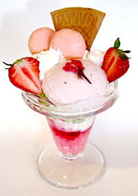 1月のパフェ 自家製ラズベリーアイスとバニラアイスで、かわいいうさぎの開運パフェ。 |